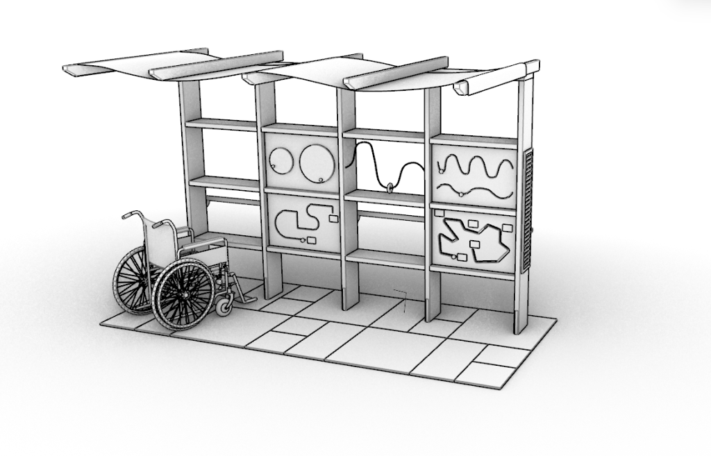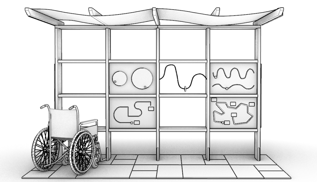 Elemento a quattro moduli per l’attività fisioterapica per la stimolazione cognitiva e motoria.